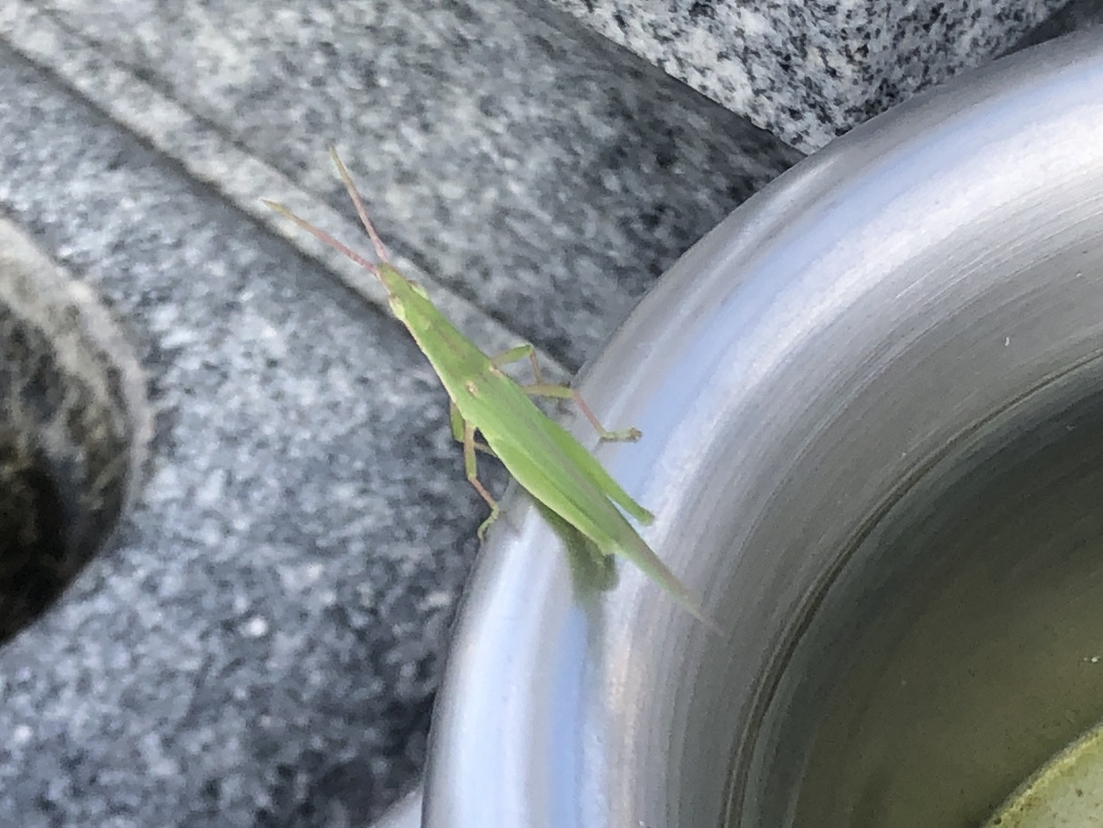 バッタが うちのお墓で休憩してました(*^_^*)