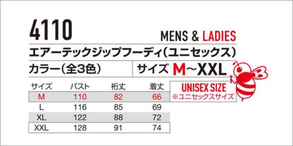 バートル4110 エアーテックジップフーディー