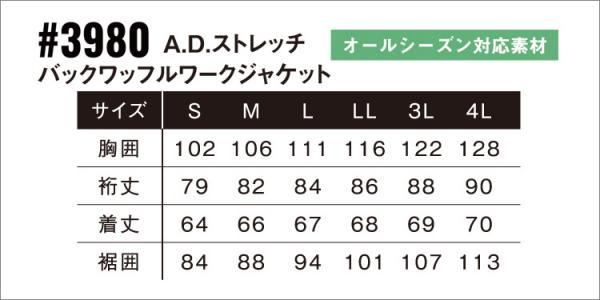 - アイズ3980 バックワッフルワークジャケット